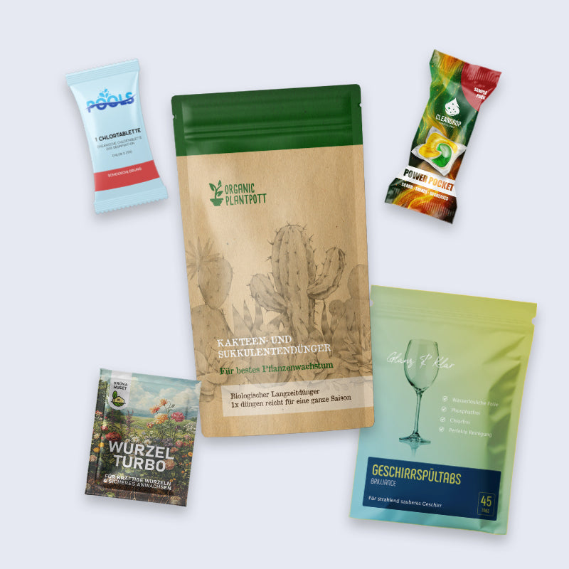 Unsere Verpackungen für Haushalts- und Gartenprodukte bieten optimalen Schutz und werden individuell nach Ihren Anforderungengefertigt. Ideal für Gartenbedarf, Reinigungsmittel oder kleine Haushaltsgegenstände. Wählen Sie Ihre individuelle Verpackung - mit recycelbaren Materialien, wiederverschließbaren Zippern, Sichtfenstern und matten oder glänzenden Oberflächen.
